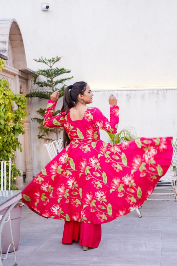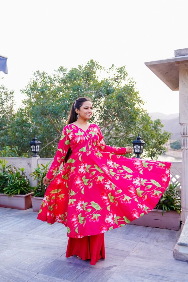 Hot Pink Floral Printed Anarkali Set plazo + gown