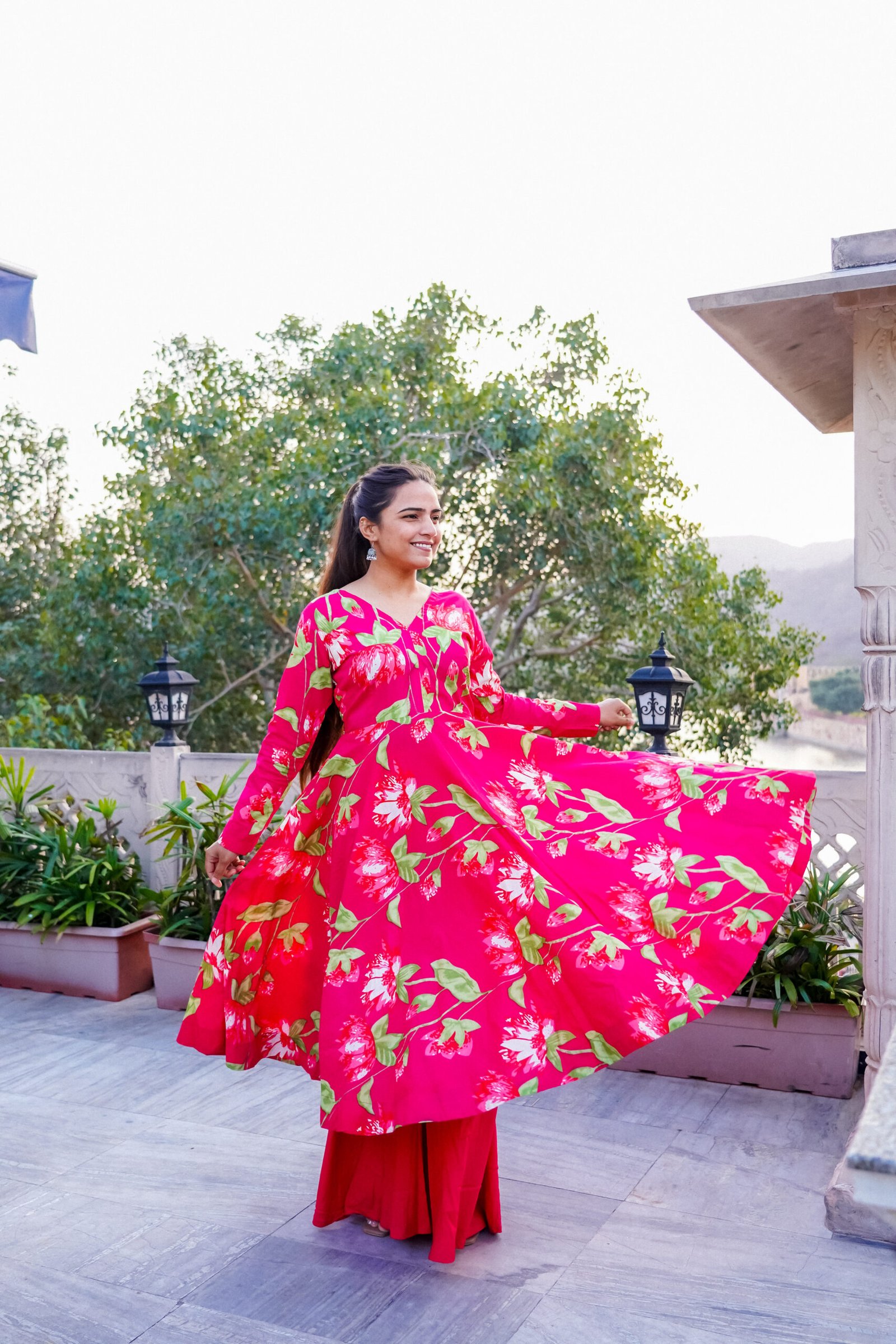 Be the first to review “Hot Pink Floral Printed Anarkali Set plazo + gown” Cancel reply